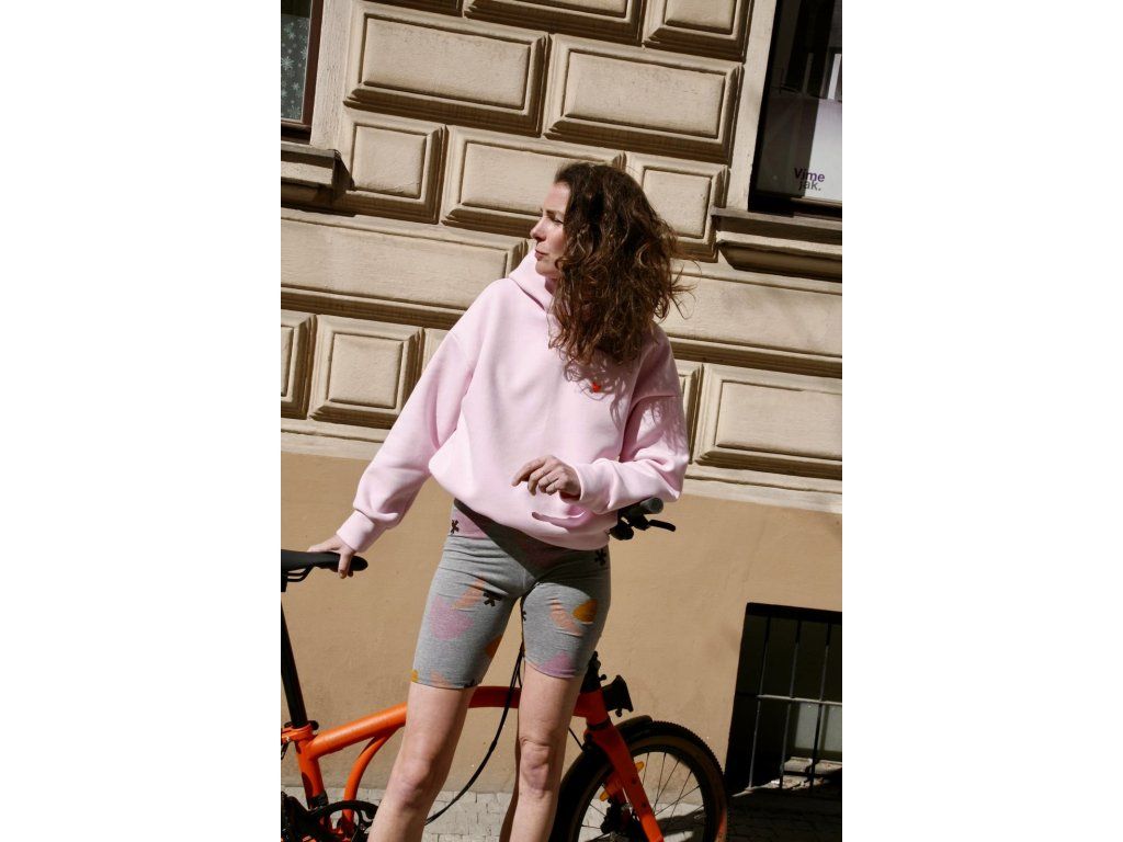 Legínové kraťásky jsou z šedého pružného úpletu, mají barevný potisk a gumu v pase
