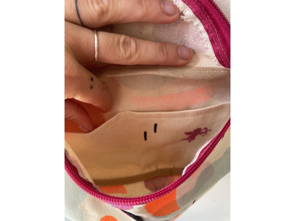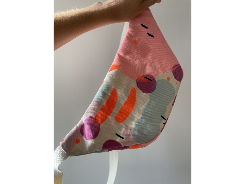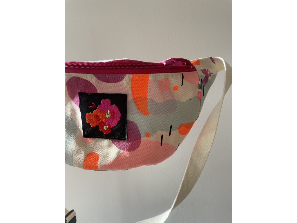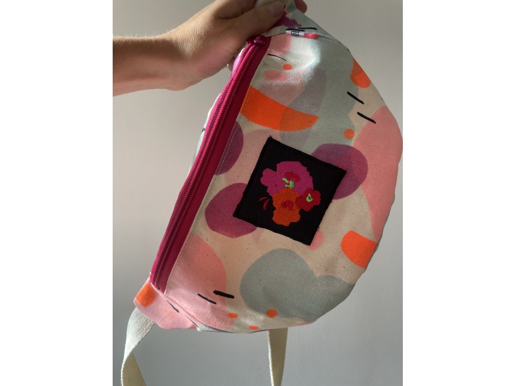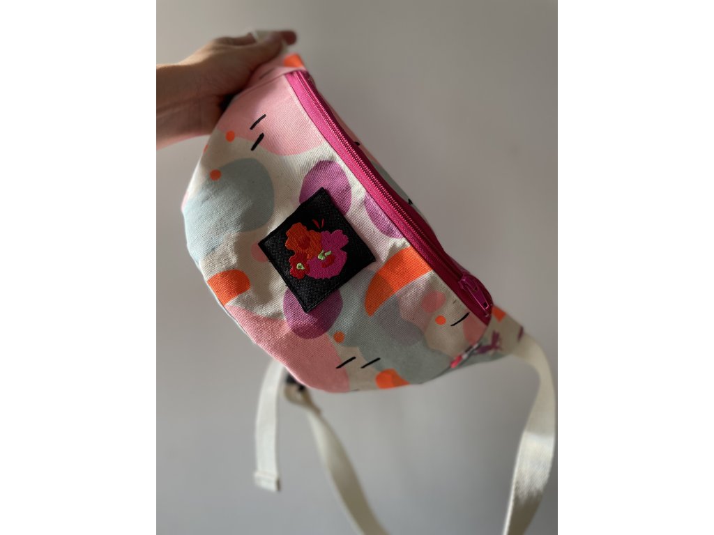 Ledvinka je z natur režného plátna, ma barevný potisk, vnitřní kapsu, nášivku na předním díle, nastavitelný popruh.