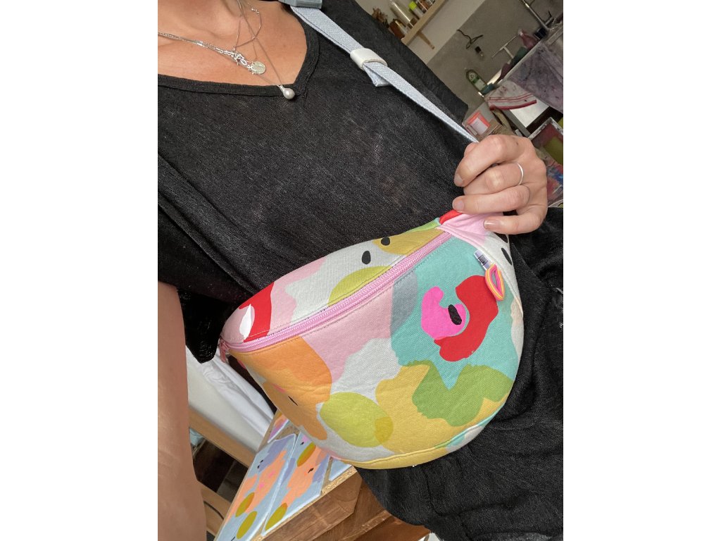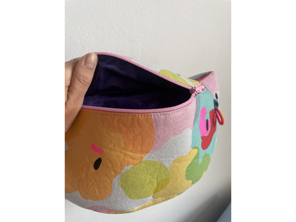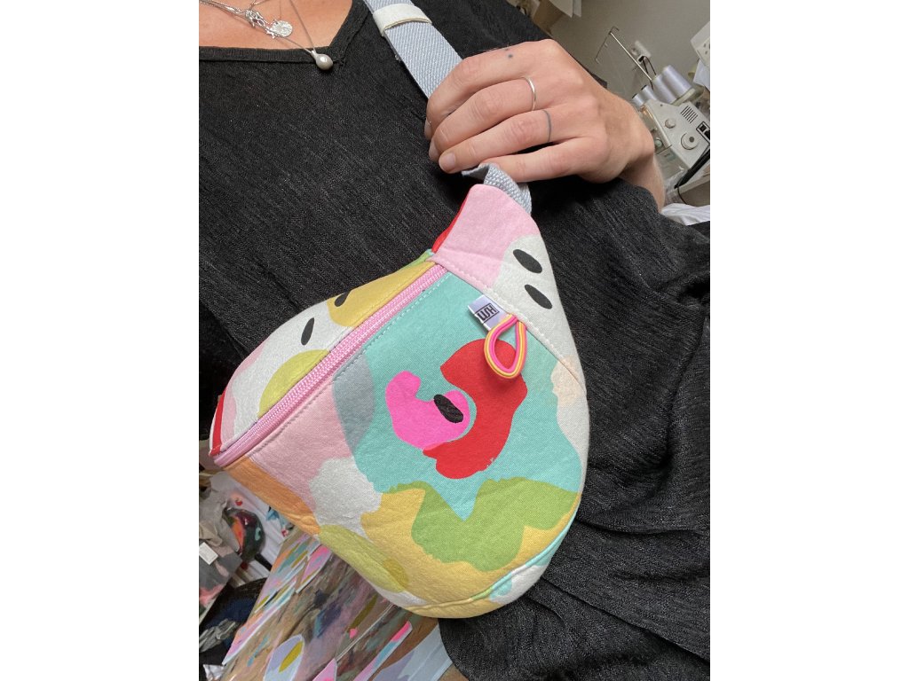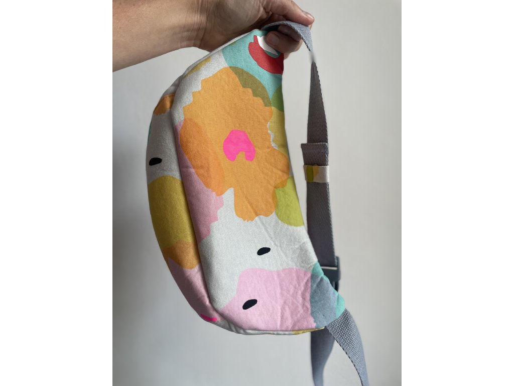 Ledvinka má šedý podklad a barevný vzor, šedý popruh.