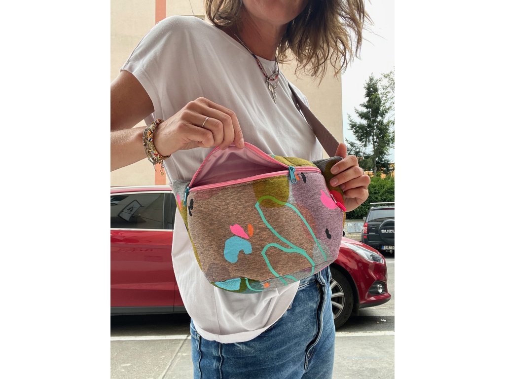 Ledvinka je z molitanově měkké látky, má výrazný potisk, zavírání na dvojcestný zip, vypodšívkovaný rub.