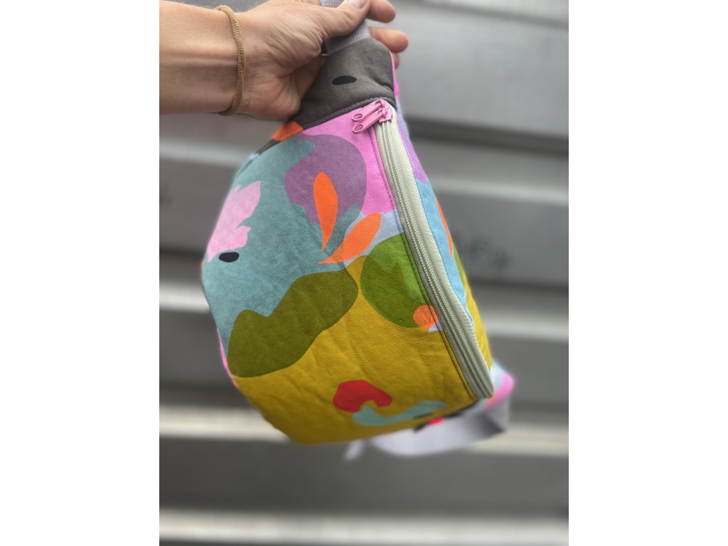 Ledvinka je z modrého “molitanového” materiálu, má original barevný motiv, zip se dvěma jezdci, dno, podšívku a posuvný barevný trojzubec.
