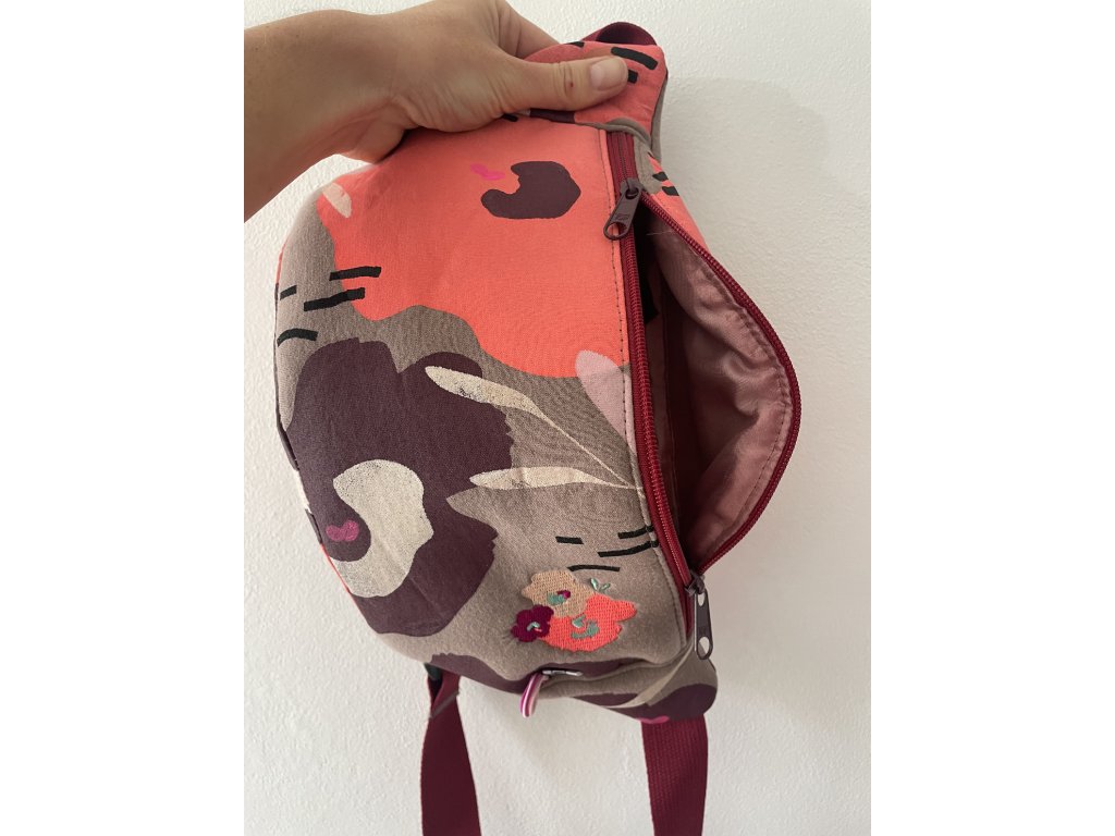 Ledvinka je z měkké molitanové látky, má vypodšívkovaný rub, z lícu výšivka a barevný tisk. Nastavitelný popruh.