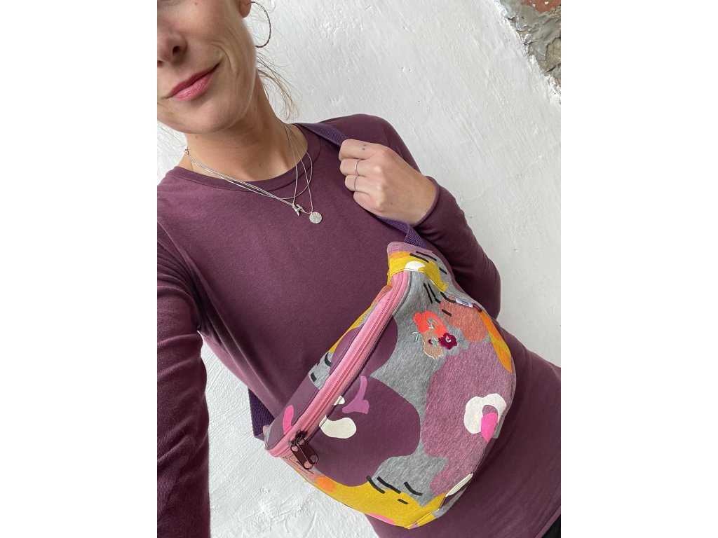 Ledvinka je z měkké molitanové látky, má vypodšívkovaný rub, z lícu výšivka a barevný tisk. Nastavitelný popruh.originál