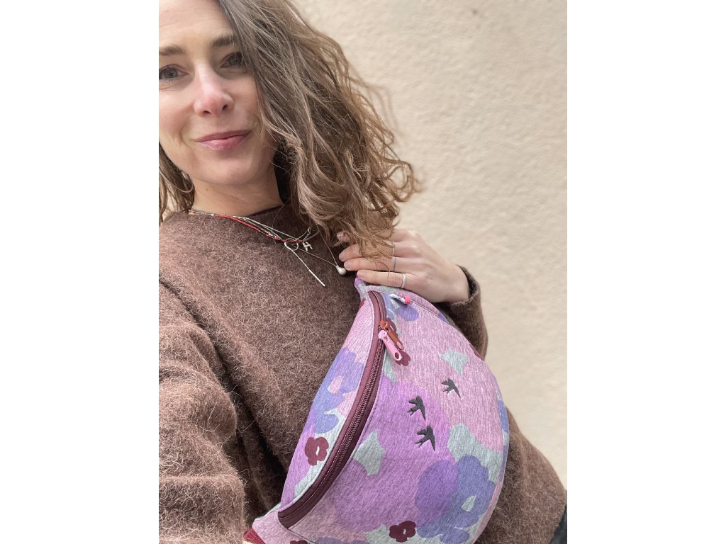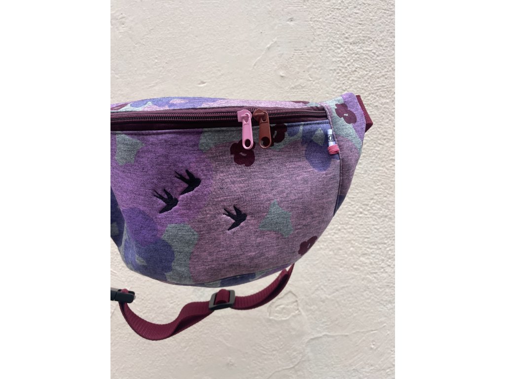 Ledvinka s tiskem a výšivkou ptáčků