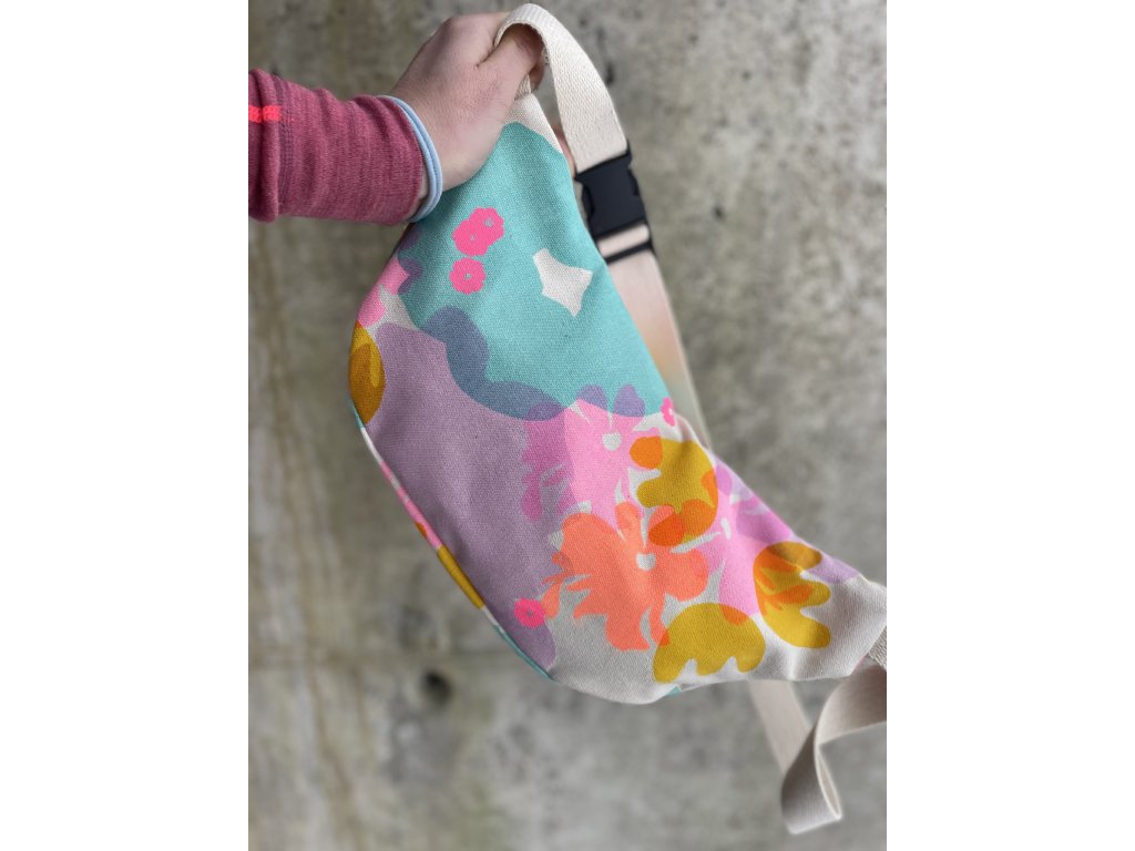 Ledvinka je z natur plátna, má celoplošný tisk a černou výšivku, natur nastavitelný popruh a černou sponu…