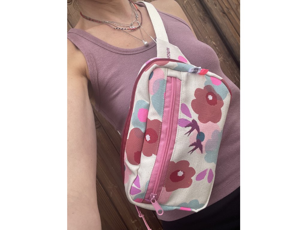 Lehká plátěná ledvinka s tiskem a výšivkou