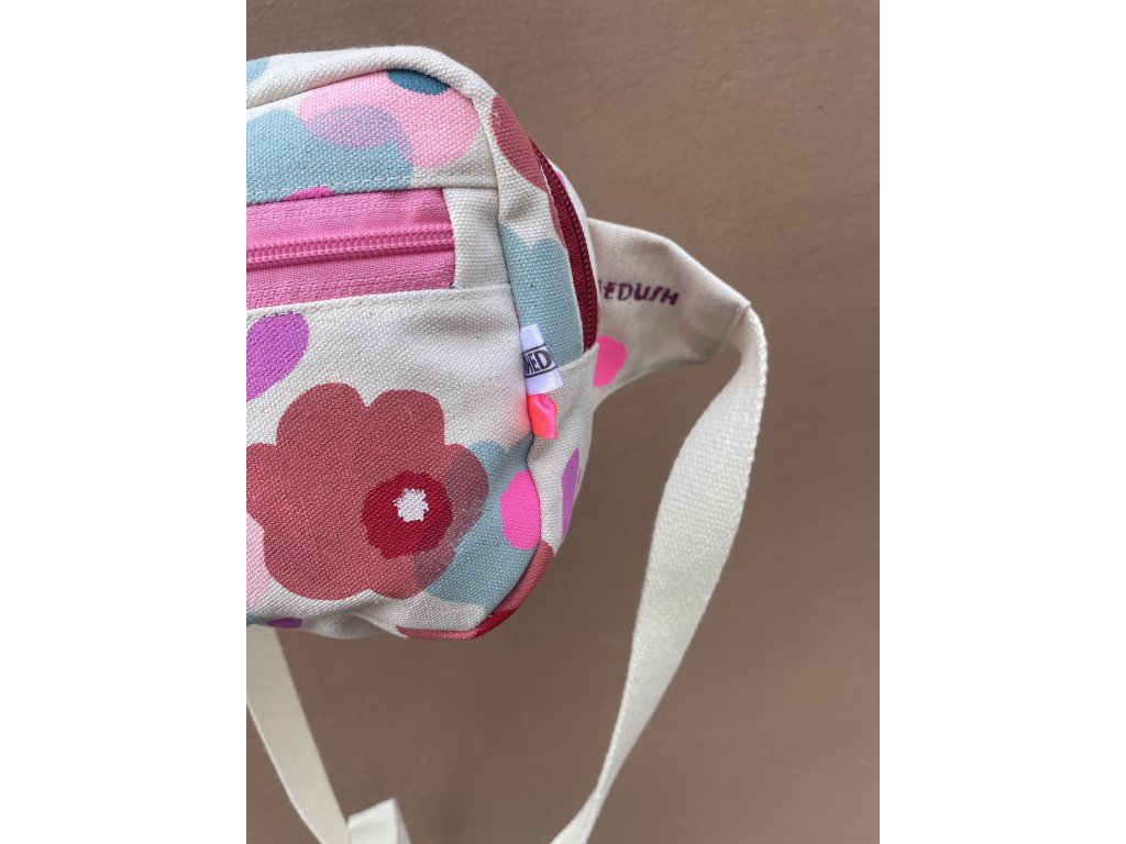 Ledvinka je z natur plátna, má tisk a výšivku na předním díle, kapsa na zip plus vnitřní kapsa, nastavitelný popruh.