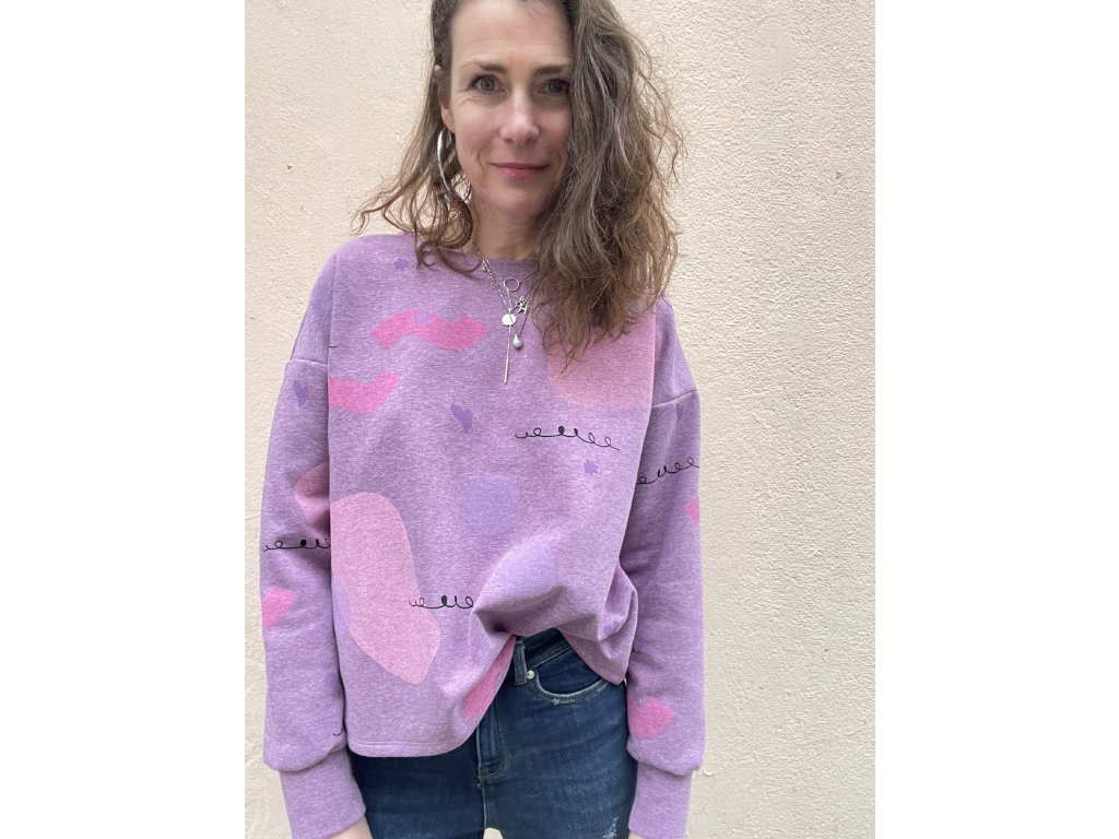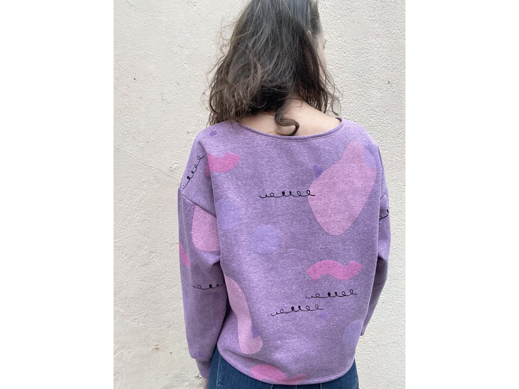 fialková volná mikina s potiskem