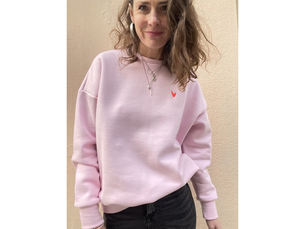 Mikina je ze zateplené teplákoviny sv.růžové barvy, má oversize volný střih, pink výšivku na prsu a barevný tisk s černou výšivkou na zádech - je to moje cesta -