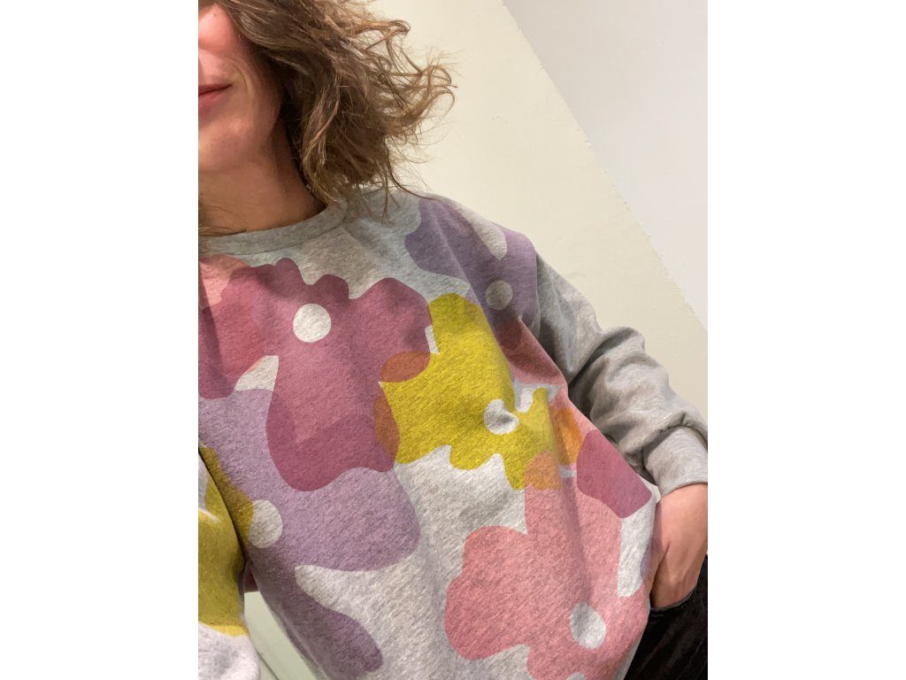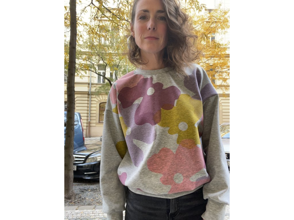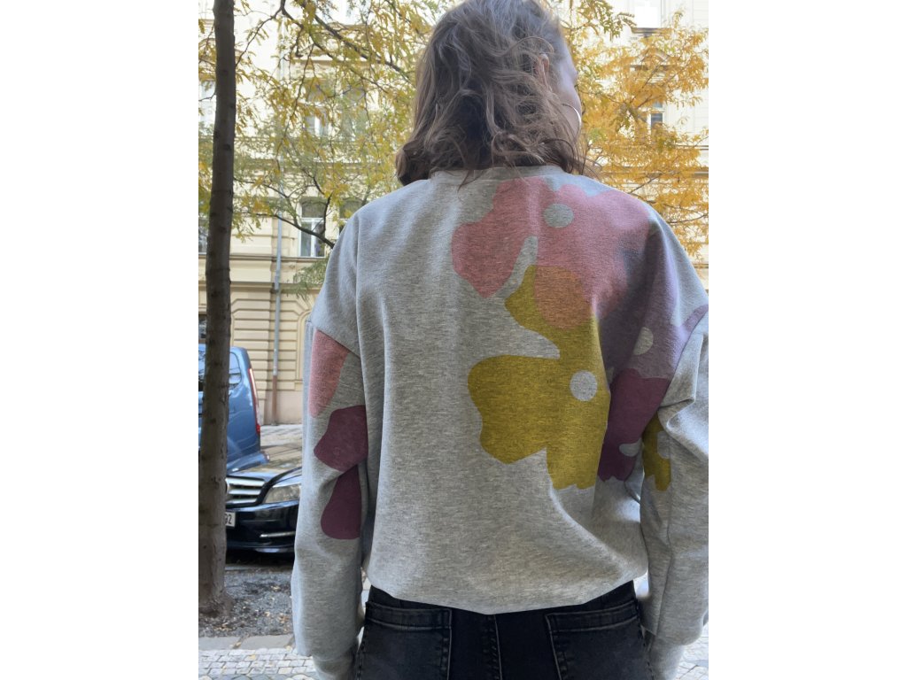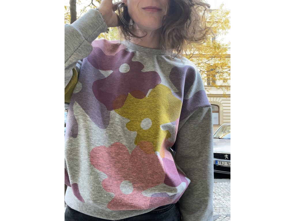 Šedá oversize mikina s pastelovým tiskem